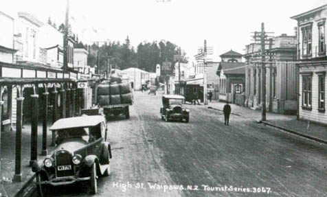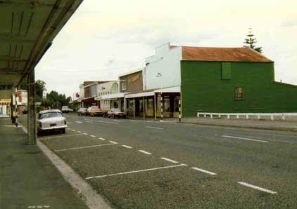 As you can see, Waipawas main street was drastically changed in 1985. Now we have a row of cherry blossom trees and some carparks there instead of shops. Only the other side of the road still exists