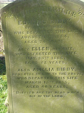 I am attaching two photographs which I took in March this year. You probably have such photos already. One is of Conder Mill and the other is the grave stone of Edward and Ellen Bibby at Ellel. I have previously sent these photos to Gordon Jackson, who is researching the Bibbys for his daughter Amelia.