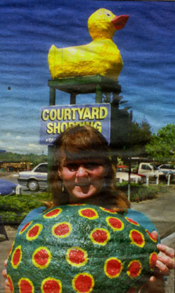 | Jan Gosling creator of Pawa duck, with the egg found recently beside ëPawaí. |