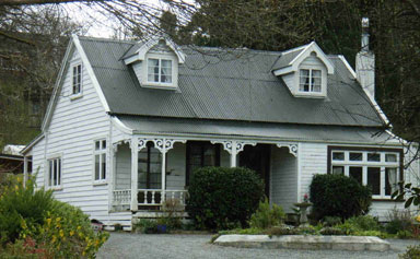 Built of Kauri shipped to Napier, and transported to Waipawa by bullock wagon. The property was surrounded by a hawhorn hedge, part of which is visible today (1990).