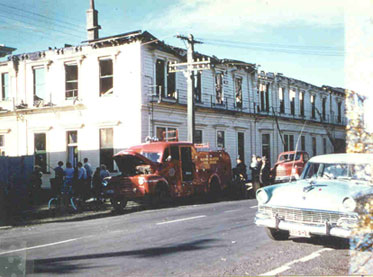 The licensees Mr J. Short and his family were away when the 20,000 square foot building caught alight. It was one of the largest wooden buildings in Hawkes Bay. The only part of the hotel to be saved was the bar.