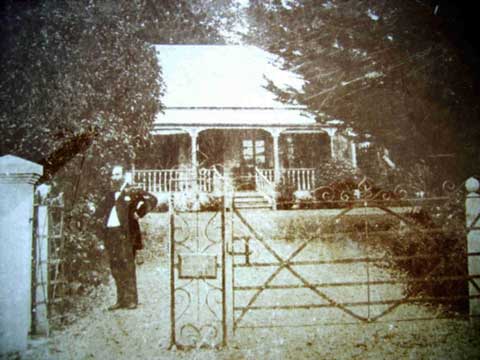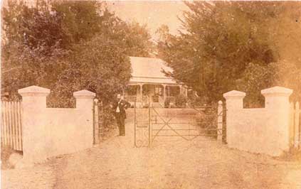 I recently went through some of the photos that my grandfather collected in his life time and found a few photos of him and his brothers playing in the paddock up behind The Pines. And probably more interesting is the postcard picturing Dr Todd by the gate way of his house (I used the photo further up in this piece) which has written on the back of it .