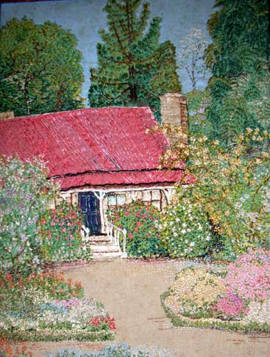 Mary Glover Bibby was also an artist. She painted and sketched and many of her artworks are shared around her vast number of descendants today. But one of her few artworks that remain of done of a Waipawa subject, is neither a painting or a sketch, but a rather beautiful embroidery of The Pines showing a very pretty garden – perhaps done in the early 1900’s.